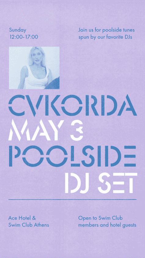 SUNSET SERIES is bringing world-class selectors to the Athenian Riviera. From golden hour into the night, join us at Ace Hotel & Swim Club Athens, April through September, for poolside revelry. This September, we welcome Satori to the decks. Plus, Athenian duo Carayas & Efrem on warm-up duty. For event table reservations, email fb.ath@acehotel.com or