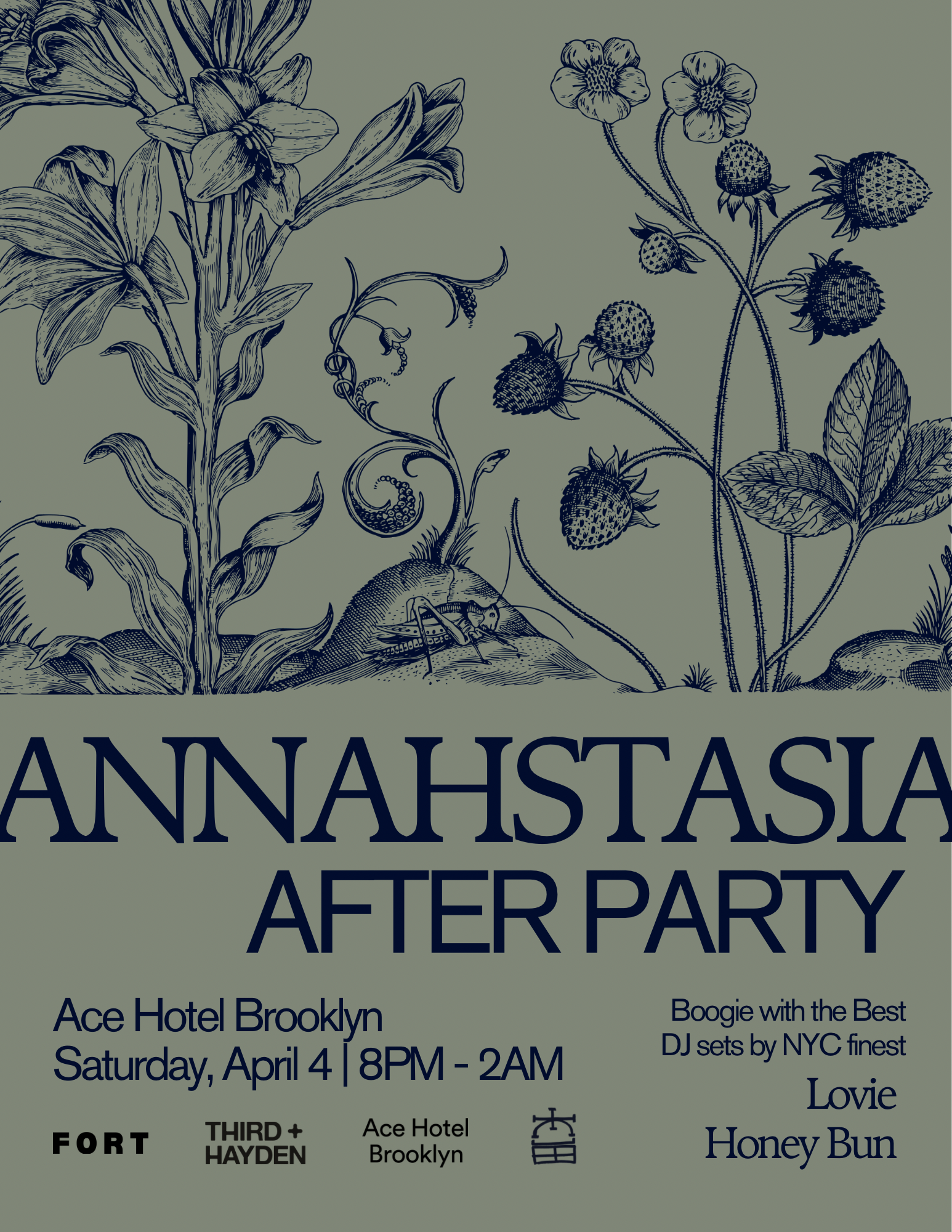 Join us for the official after party for American folk musician Annahstasia’s Brooklyn residency, with music by Lovie and Honey Bun.
